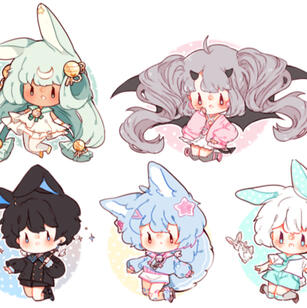 ♡ Fullbody with blinking - 100$ + simple BG. can include in price the sparking thingies as shown in examples. any extra simple animation +2$-5$, complex may cost more.♡ very complex characters: +2$-20$.